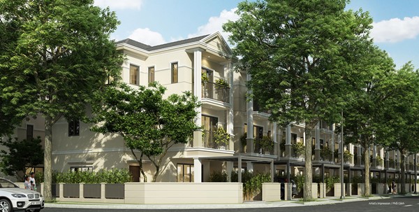 Vị trí biệt thự liền kề vườn nằm cạnh cổng ra vào của khu biệt thự compound Nine South có mặt tiền đường 20m nên rất tiện làm văn phòng kinh doanh và để ở.